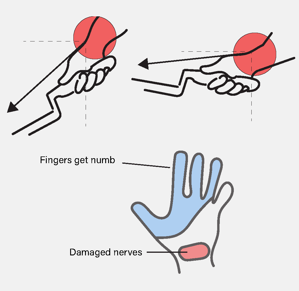 Using force from the wrist and bending it upward will have a strong impact on the nerves which causes wrist tendonitis.