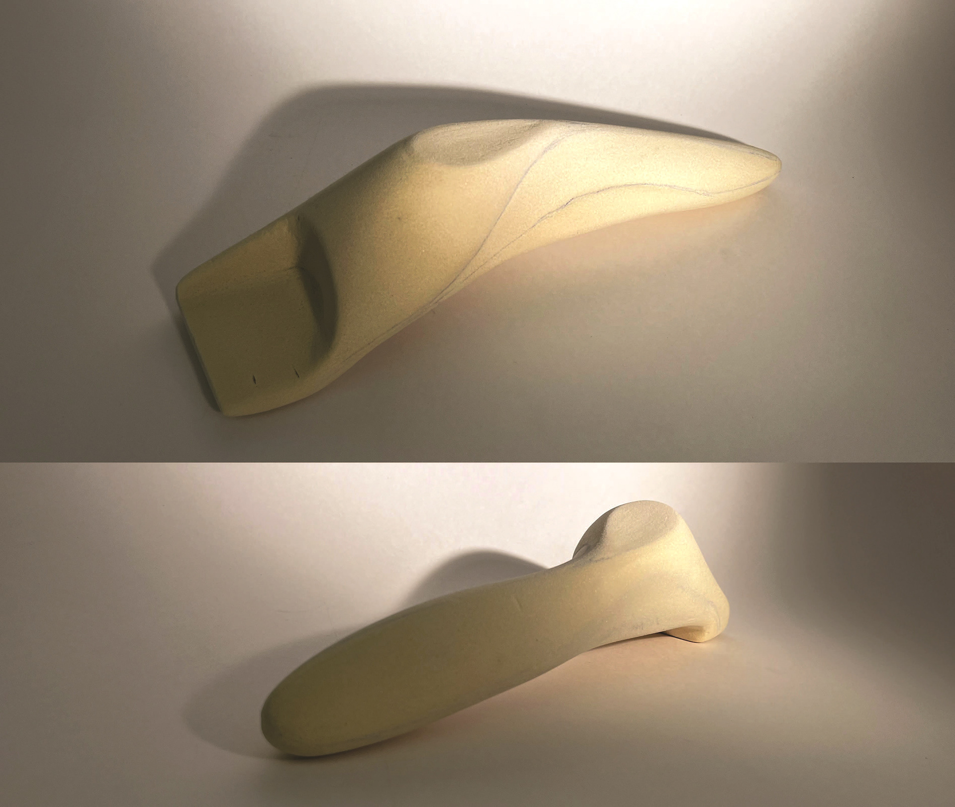 By leveraging rapid prototyping methods like yellow foam and 3D printing, I was able to quickly iterate on design ideas and gain insights into both the aesthetic appeal and practical performance of the prototypes.