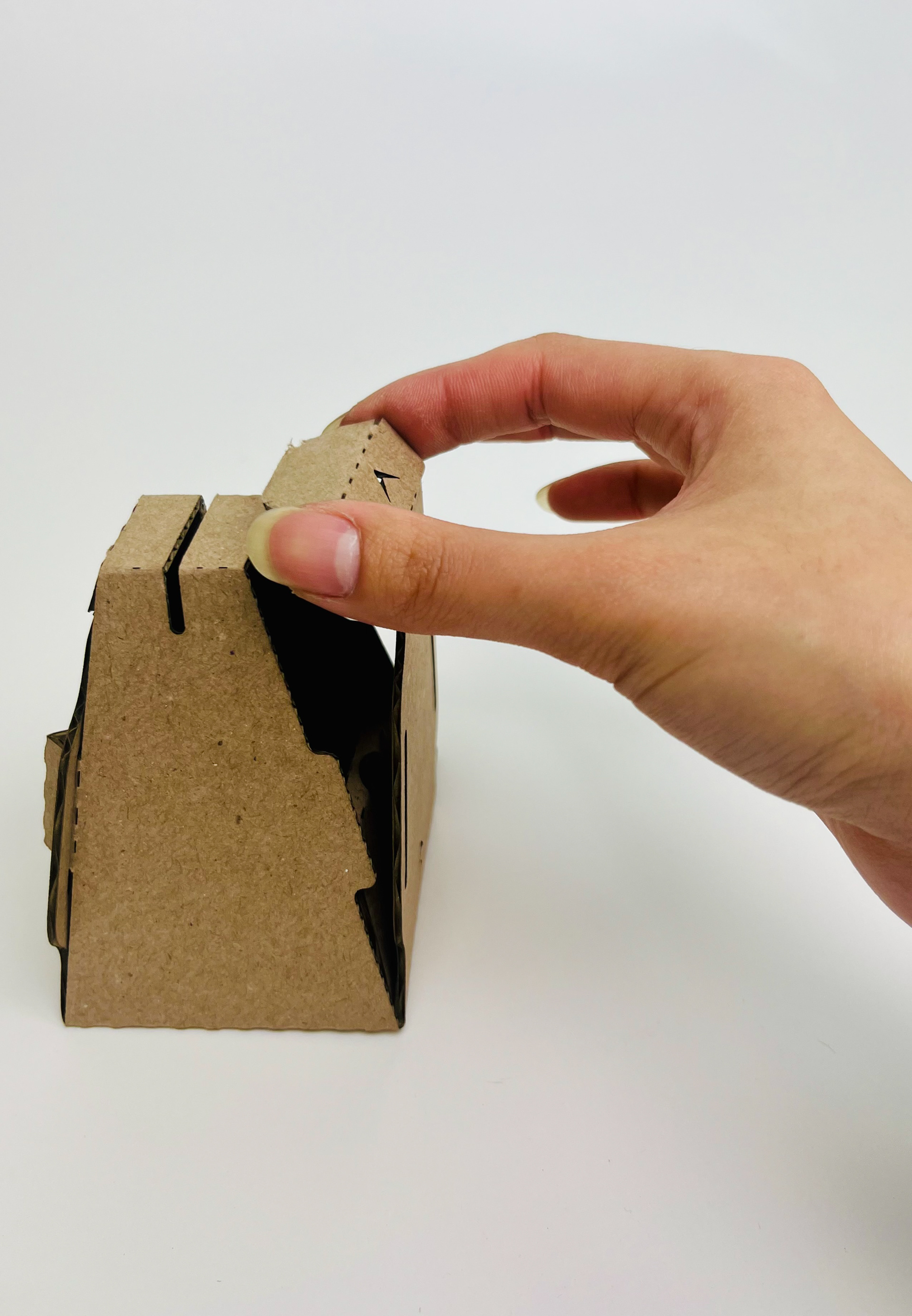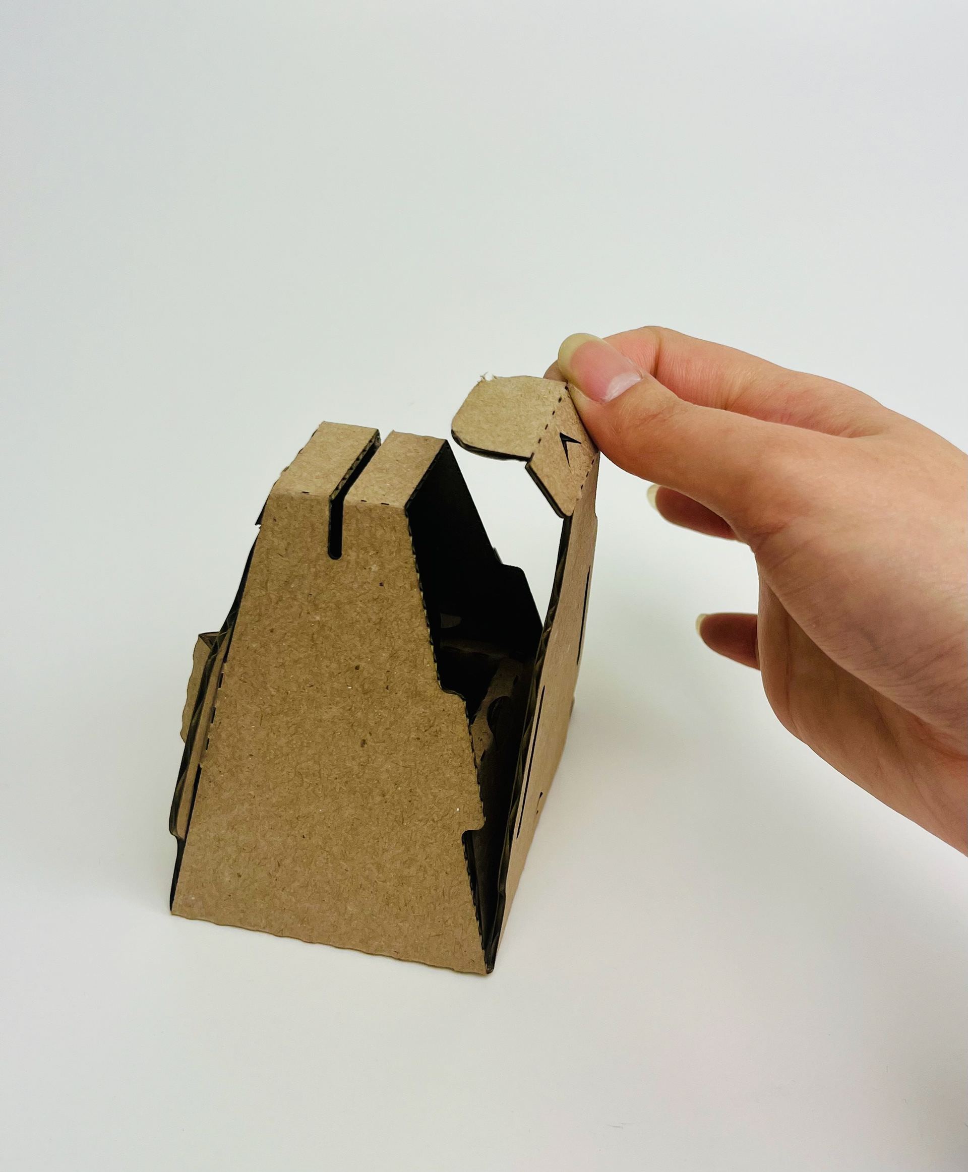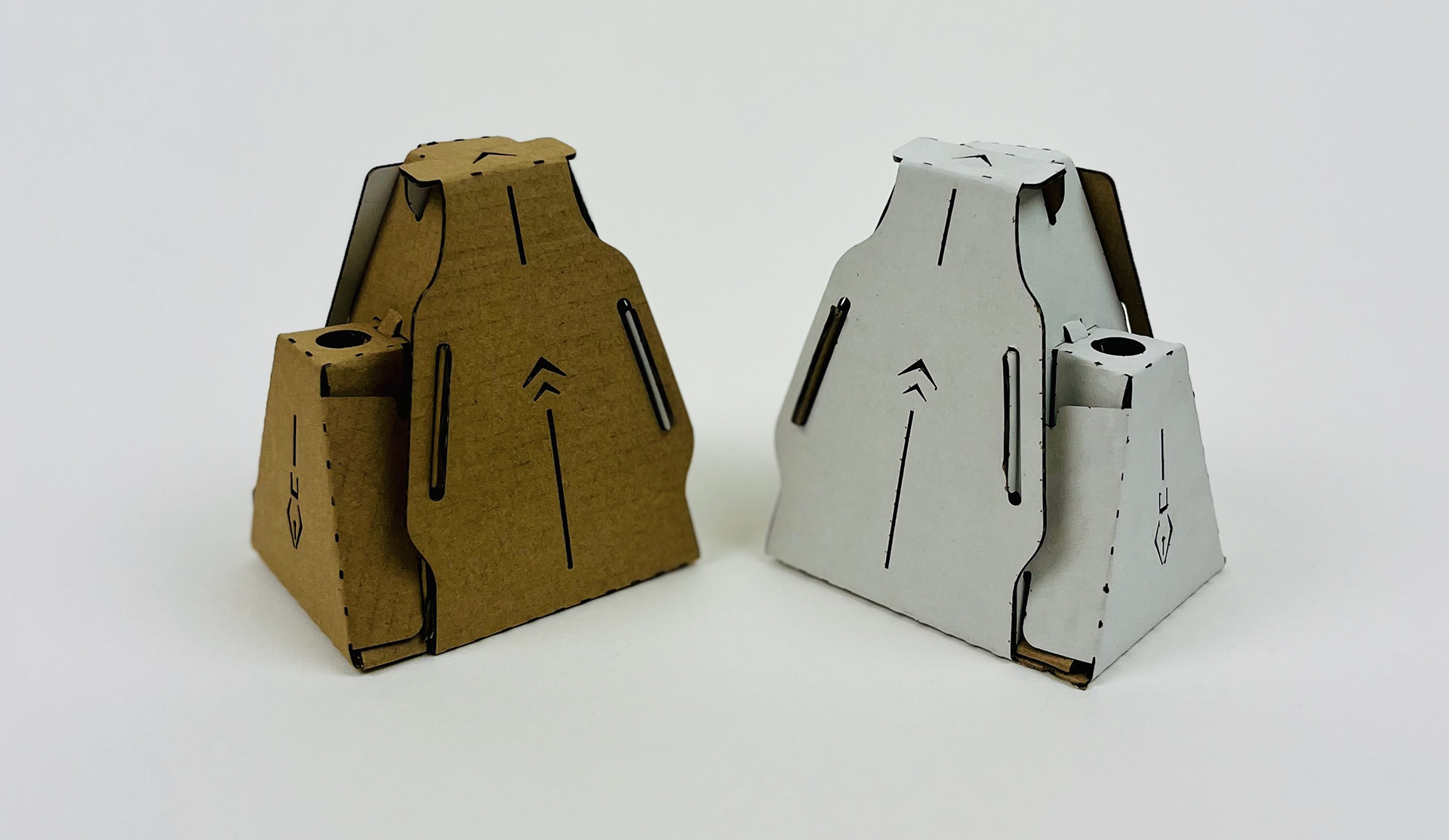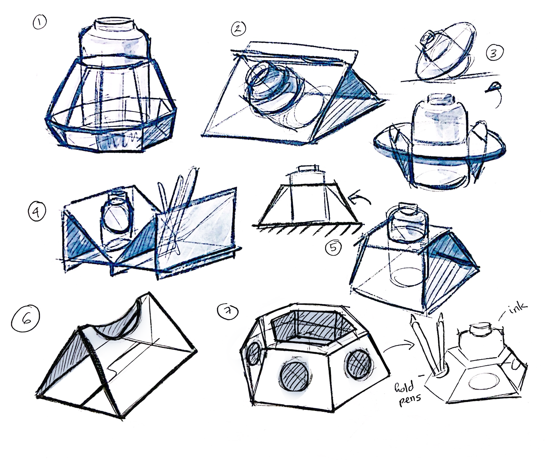 Challenge: Design a stable, staple-free, glue-free cardboard ink holder for messy artist workspaces.