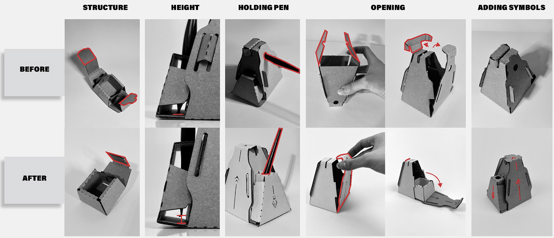 After designing the base, I focused on creating a user-friendly package for pens and nibs. Based on feedback, I simplified the opening mechanism.