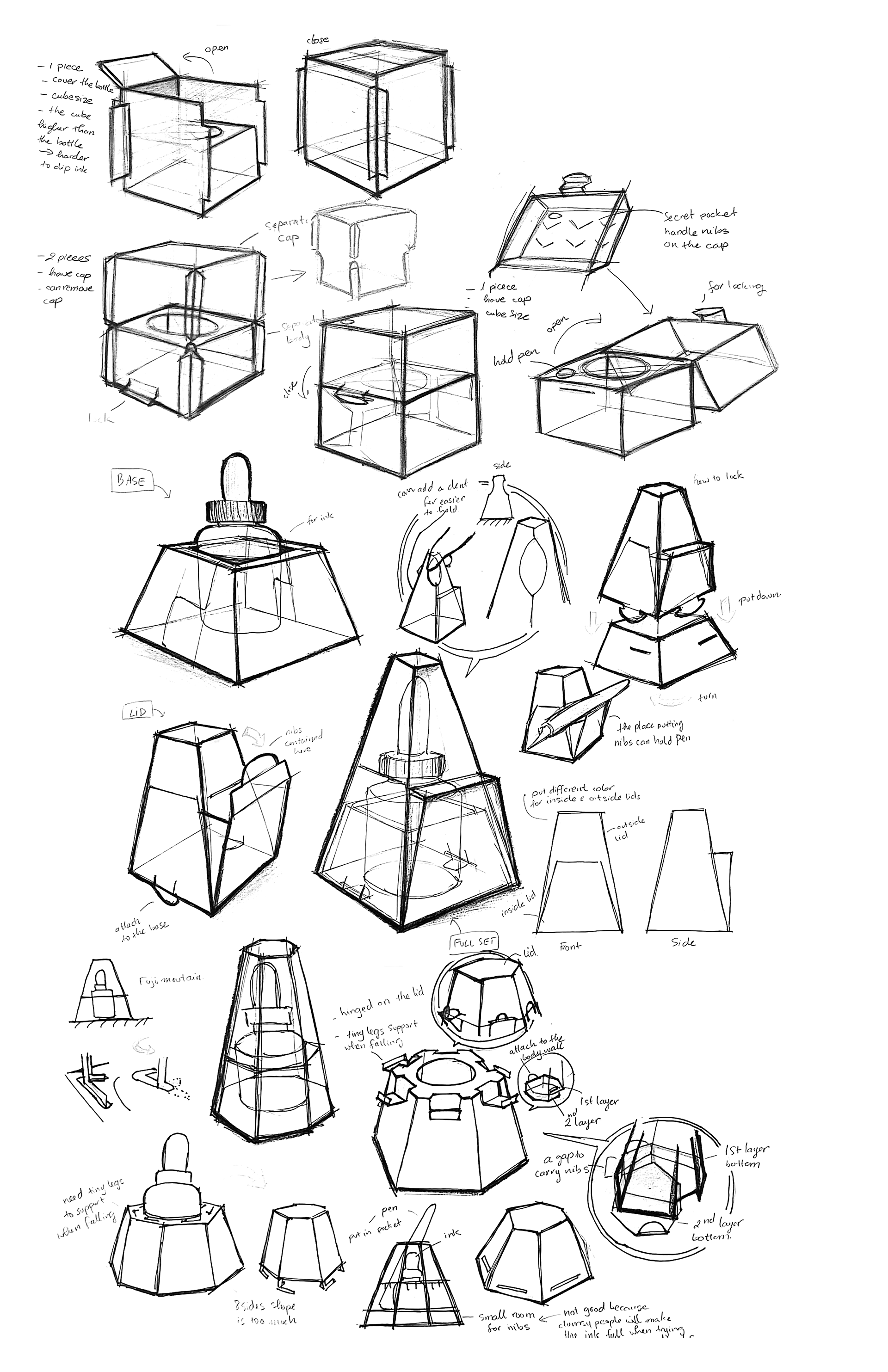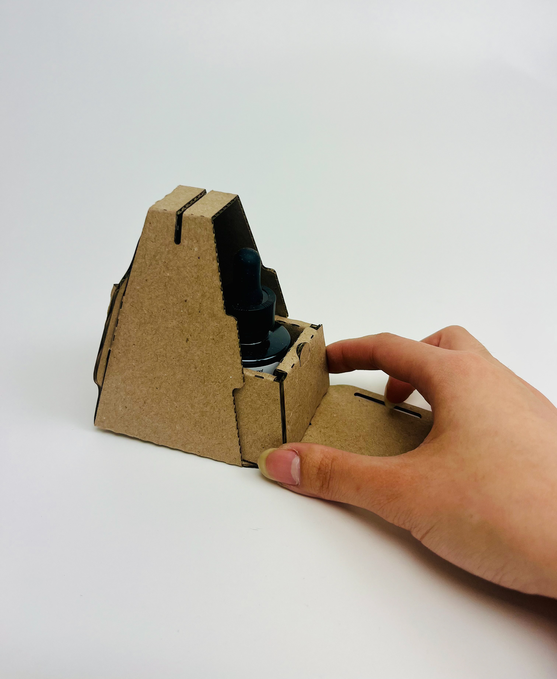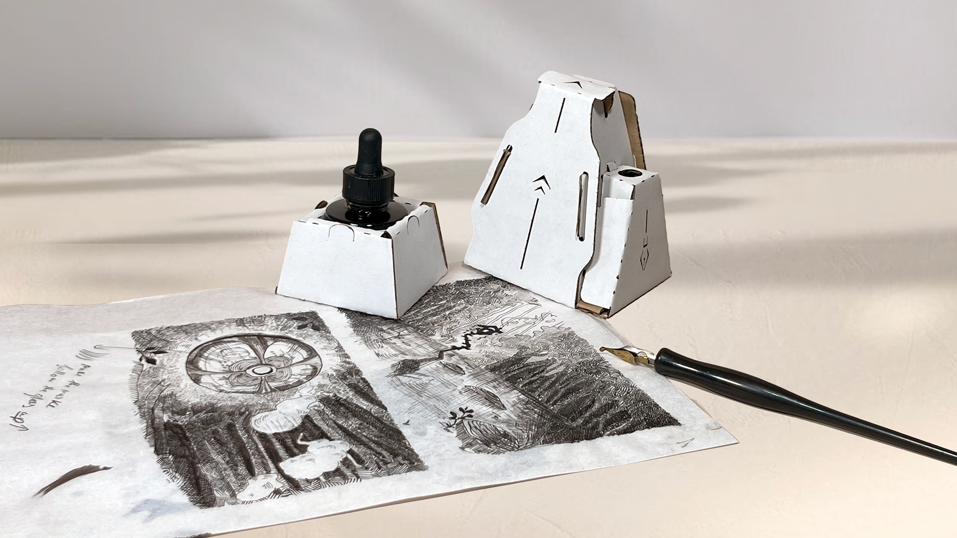 My idea is to design a foldable cardboard product with a big base, a pocket to hold nibs and a pen. Based on user feedback, I chose a small, simple ink holder to refine the design and include space to store a pen and nibs.