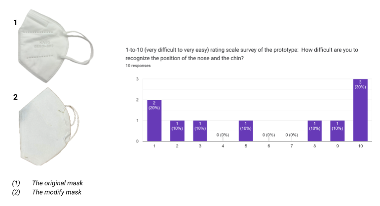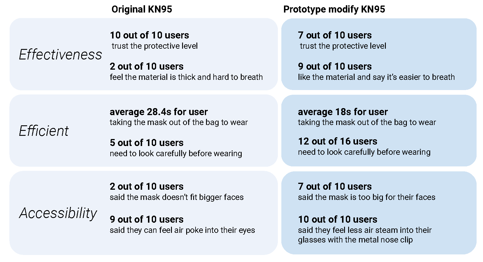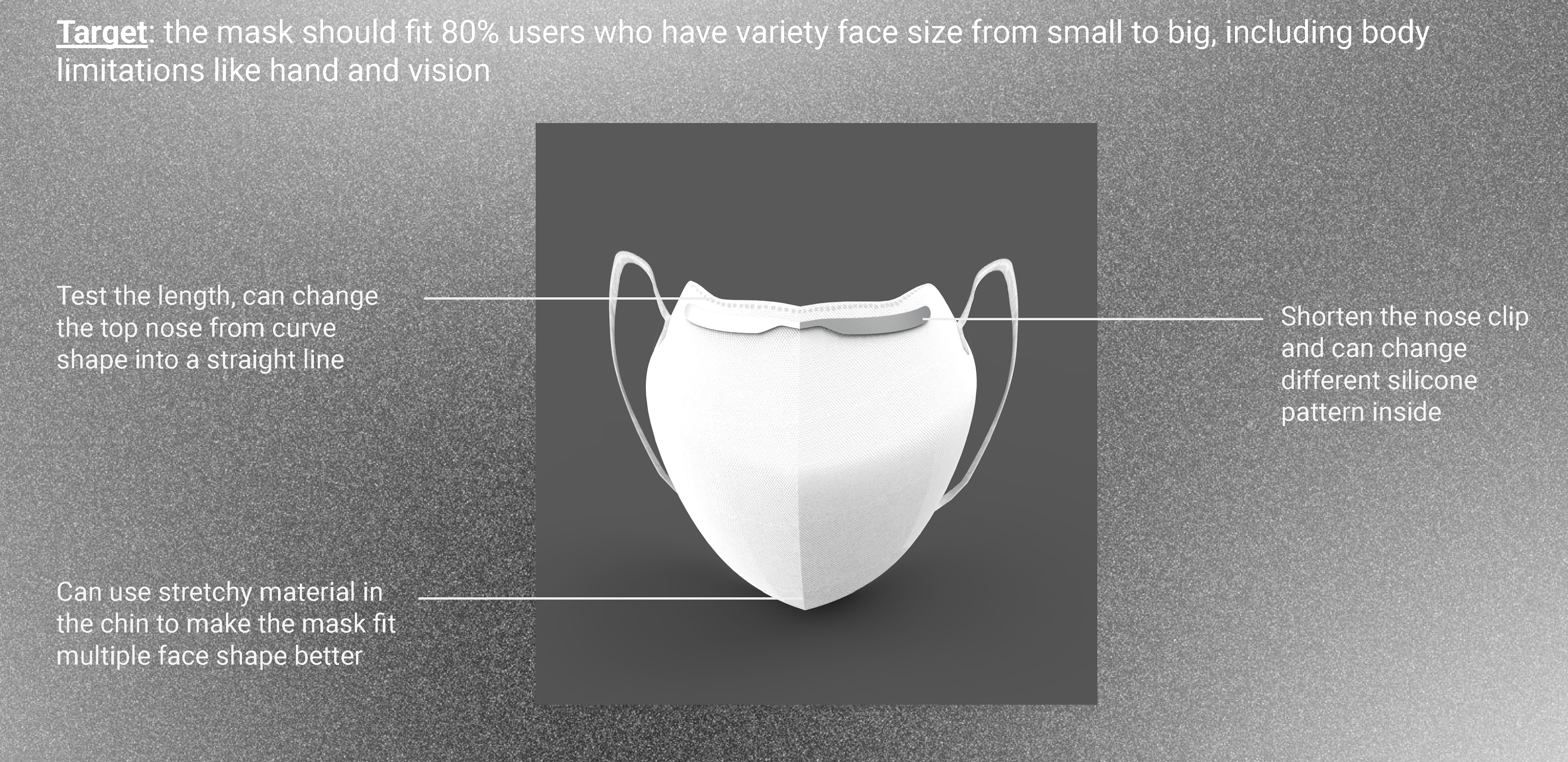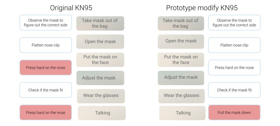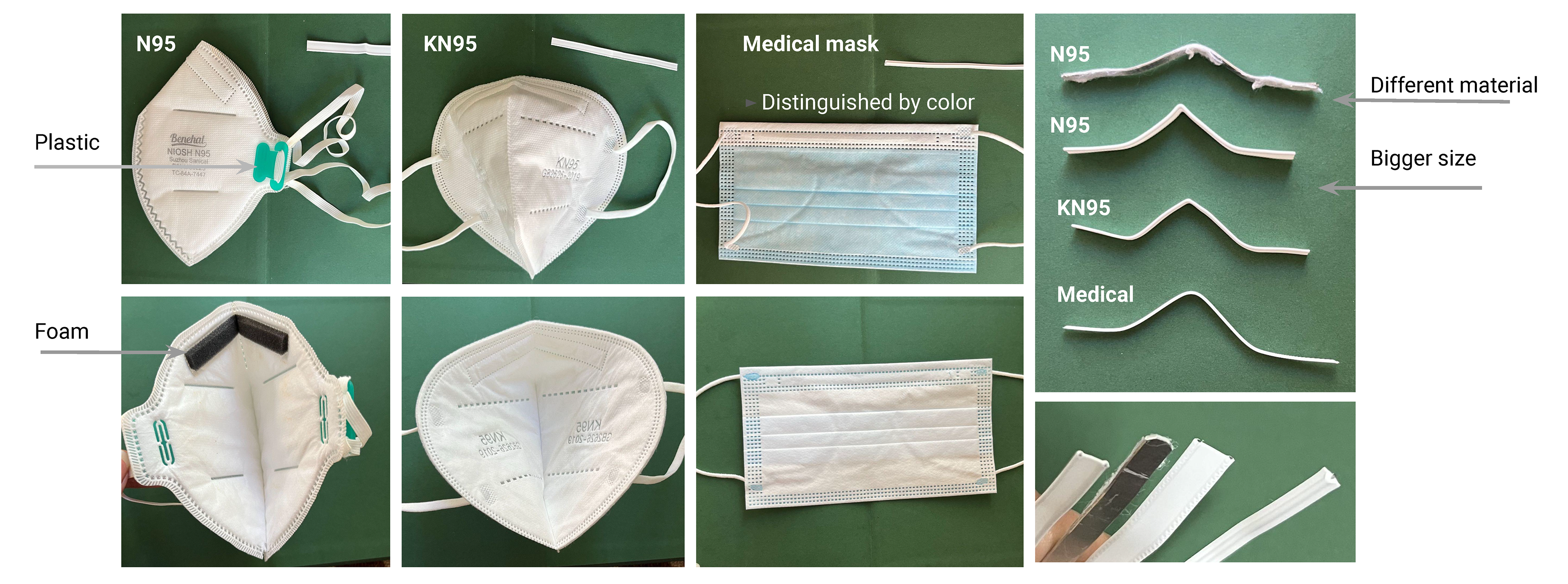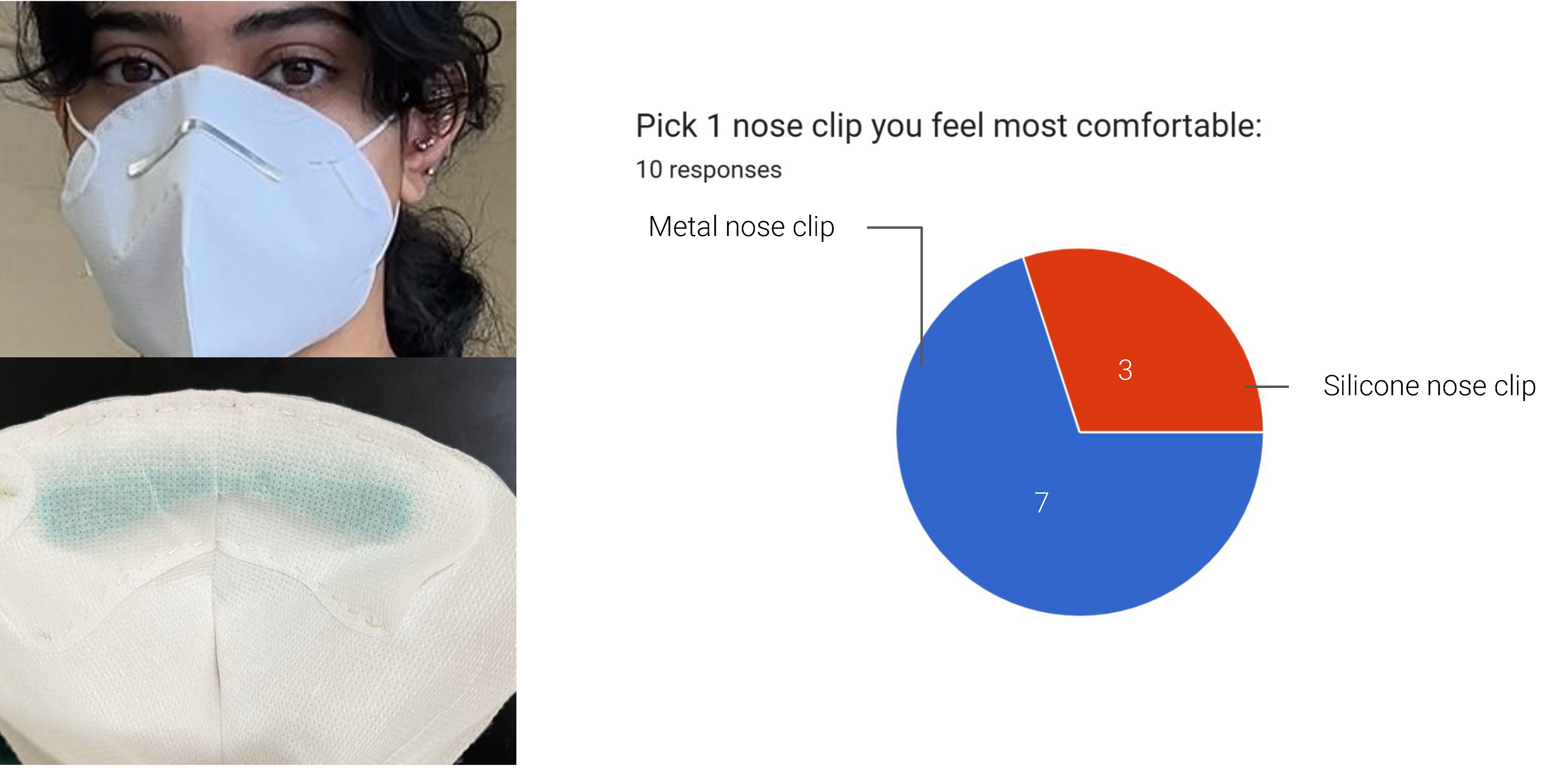 - 4 users feel it’s easy to recognize the shape with a metal nose clip outside. Without the outside nose clip, 6 users struggle to figure out the right way to wear the mask.