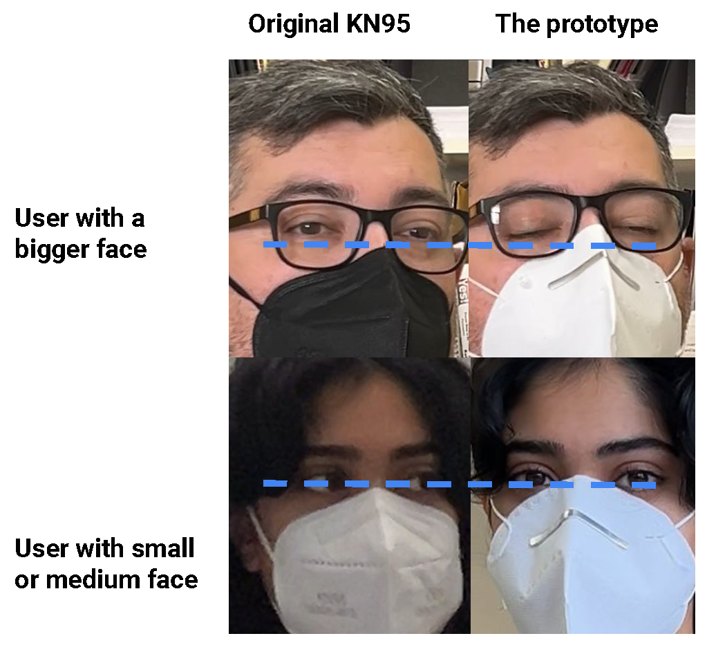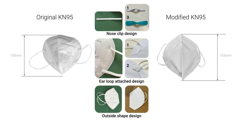 While the Modified KN95 improved in terms of reduced nose clip adjustments, it presented a new usability challenge for users with medium facial sizes, who encountered difficulties because the mask was too big.