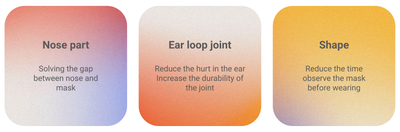 Based on the research, modifications should prioritize innovative nose clip and ear loop attachment methods. Additionally, a curved cut design will enhance the product's fit and overall appearance, making it more recognizable.