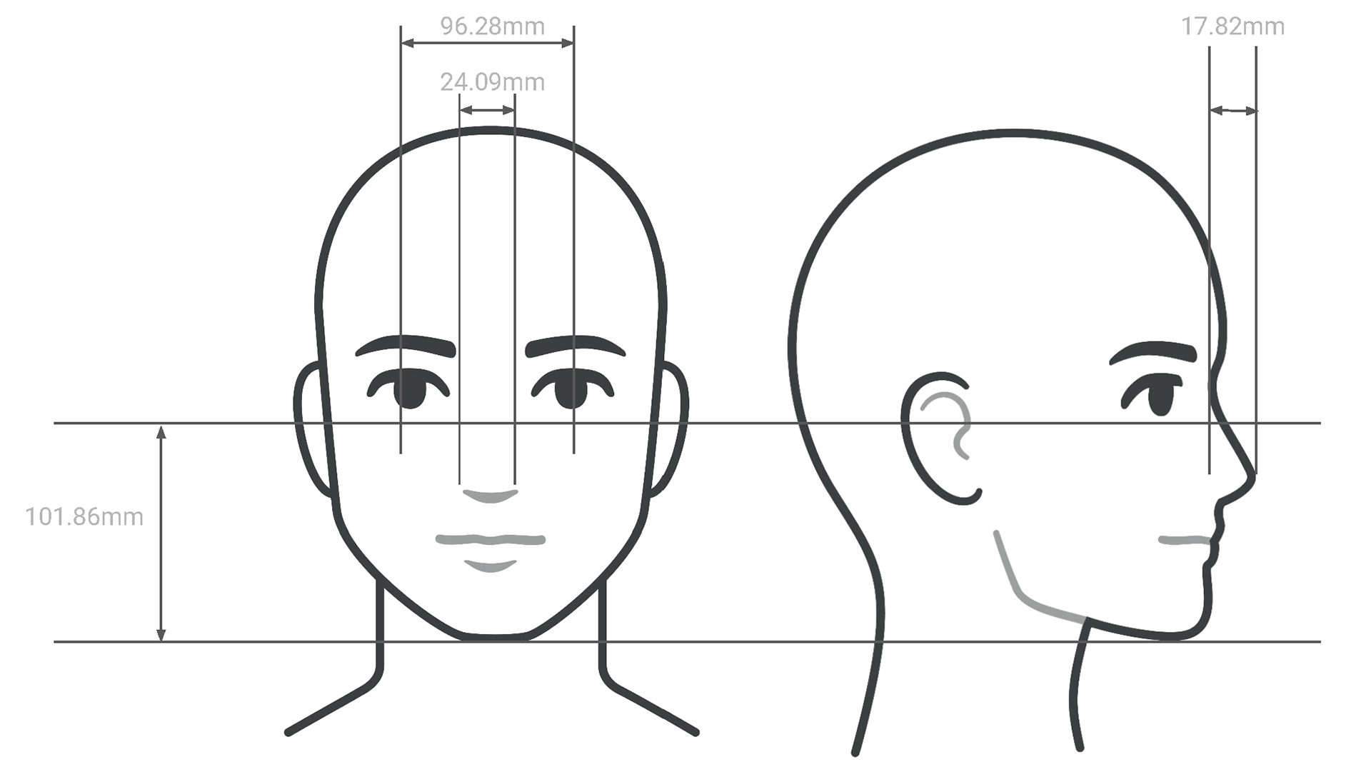 Together with the ideas from the Research, I measured 15 users with various head sizes to get the average dimension.